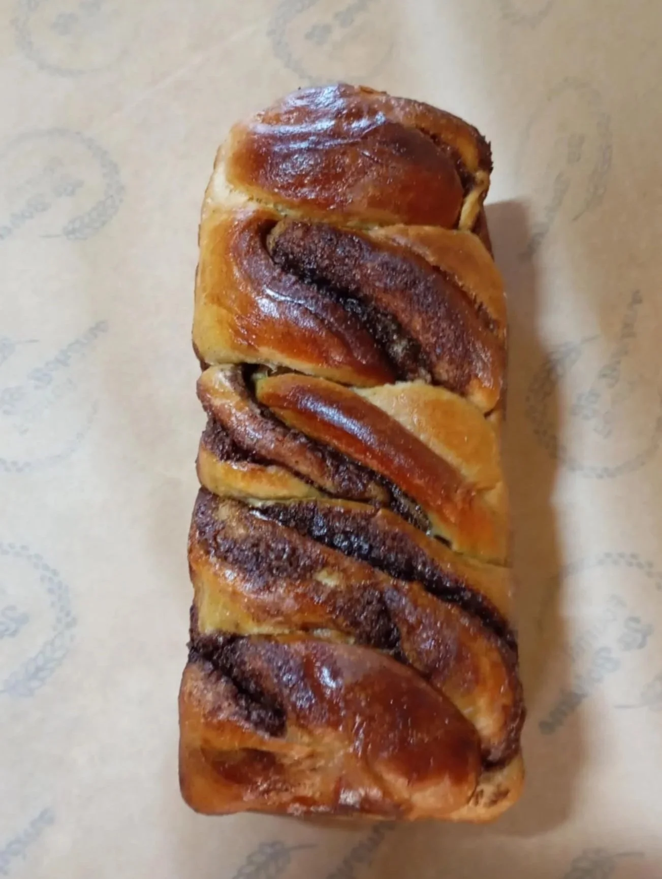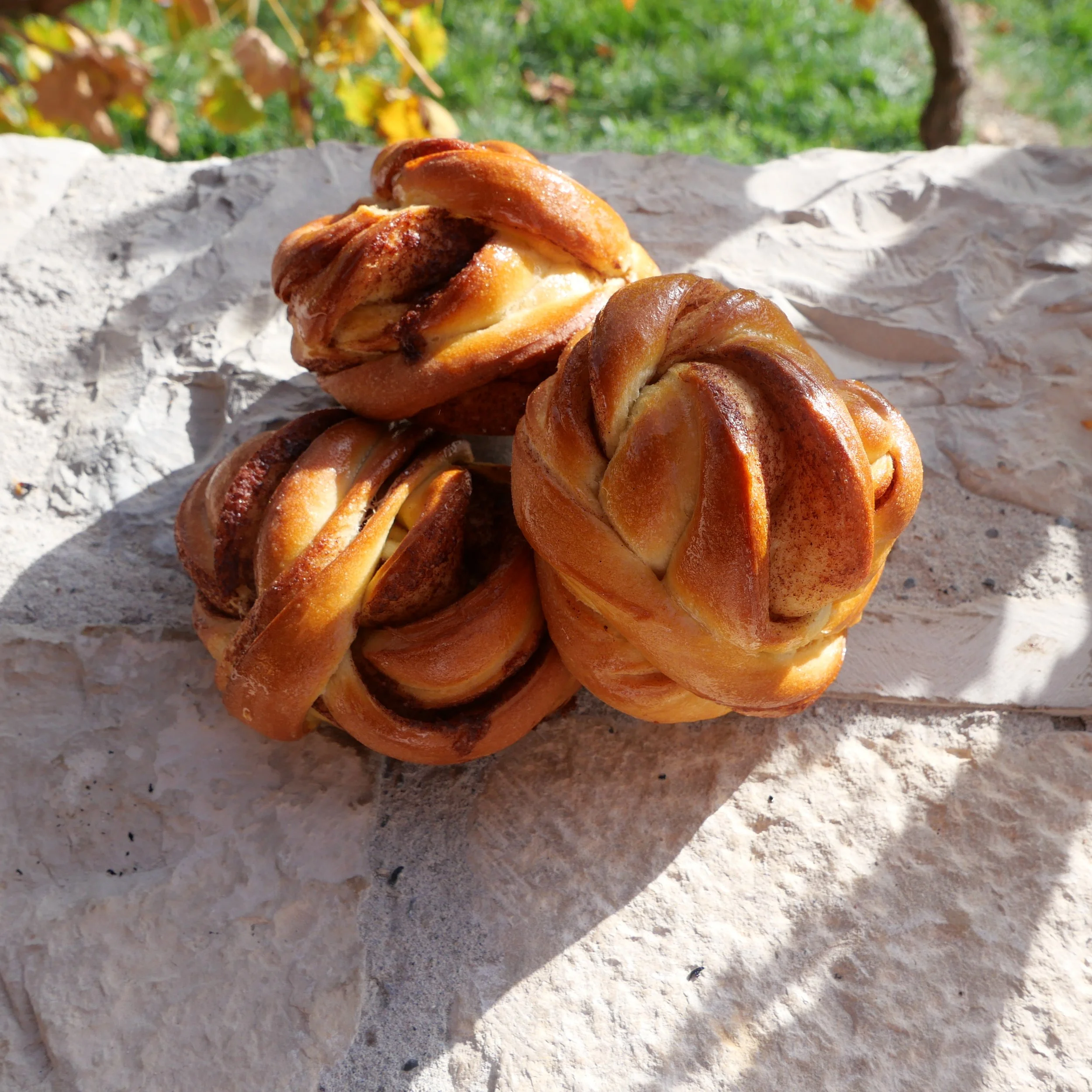 Farine de blé T65, eau, lait, œufs, levain de lait, sucre, beurre de barate, levure boulangère, sel de Guérande, cannelle, mélange 4 épices