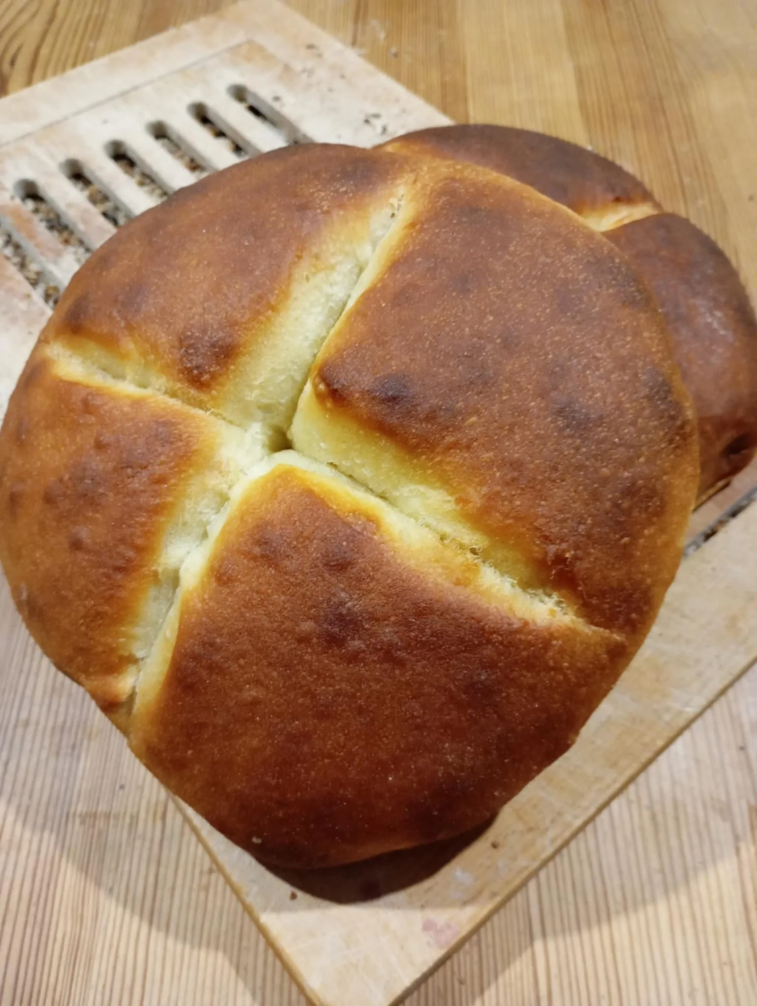 Farine de blé T65, eau, levain de lait, sucre, huile d’olive, levure boulangère, sel